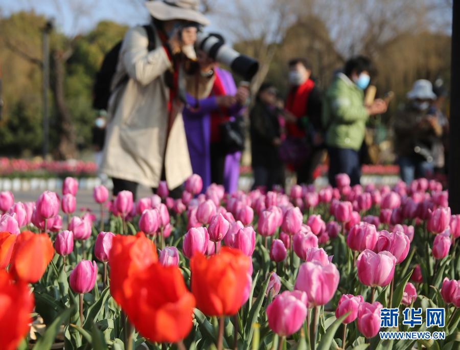2月14日,游客在昆明市大觀公園拍攝盛開的郁金香。新華社發(fā)(梁志強(qiáng) 攝)