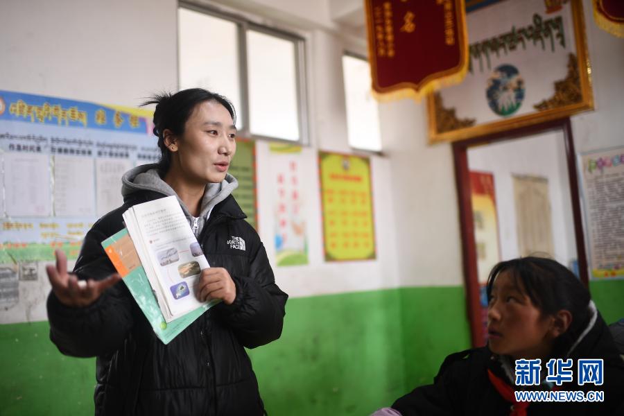 3月16日,索加鄉寄宿小學語文老師查日在為學生上課。新華社記者 張宏祥 攝
