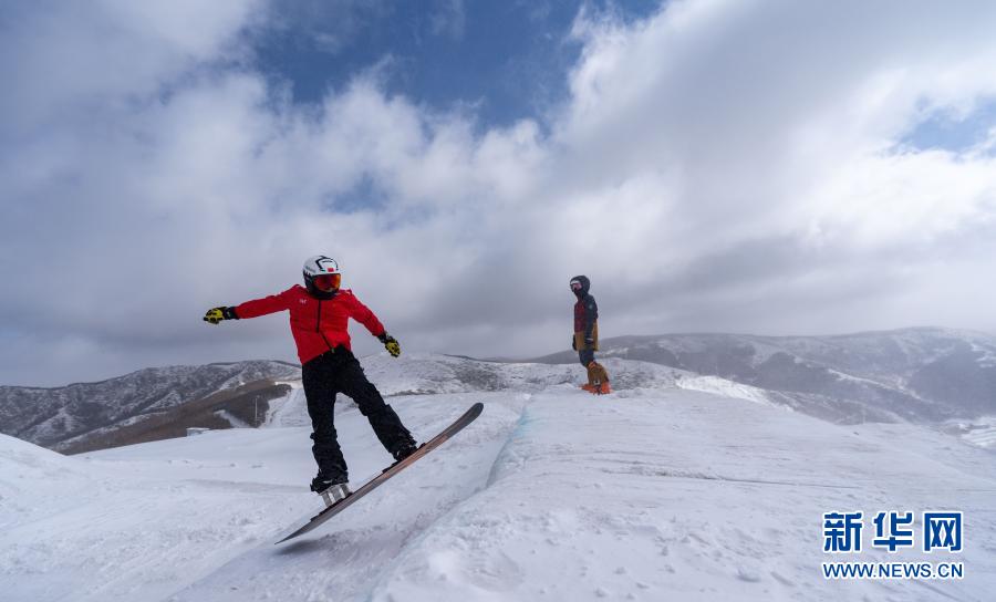 3月20日,冬殘奧會國家集訓(xùn)隊單板滑雪運(yùn)動員許祥(左)在冬殘奧會訓(xùn)練基地訓(xùn)練。新華社記者 才揚(yáng) 攝