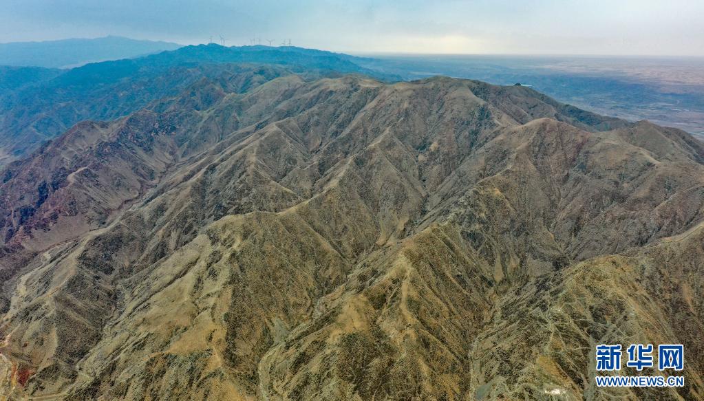 這是黃河黑山峽河段沿線的山巒(4月3日攝,無(wú)人機(jī)照片)。