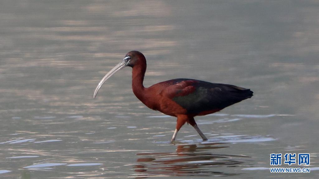 彩鹮在福建省霞浦縣福寧灣灘涂覓食(4月17日攝)。一對彩鹮近日現身福建省霞浦縣福寧灣灘涂的視頻,經當地媒體播發后引起轟動,各地攝影師及當地生態保護志愿者紛至沓來,一睹它們的“芳容”。新華社記者 梅永存攝