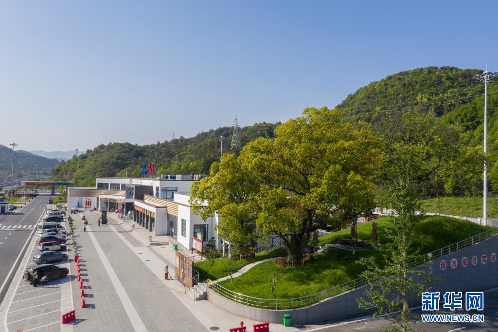 杭州第二繞城高速西復(fù)線次塢服務(wù)區(qū)有3棵樹齡在100年以上的古樹。服務(wù)區(qū)在建設(shè)過程中,將古樹保護起來,現(xiàn)已成為一道特色景觀。新華社發(fā)(郭斌 攝)