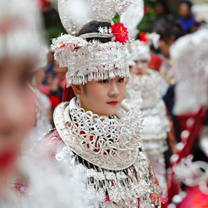 今年姊妹節前夕,母親張元英把女兒盛裝的銀飾拿到銀飾店里進行清洗,希望女兒能在盛裝巡演上展示最美的一面。4月25日姊妹節當天,張佳麗早早起床,在母親和同學的幫助下,開始化妝、穿衣、佩戴銀飾,一直忙到9點才準備完畢。身著盛裝站在巡演隊伍中,張佳麗說:“這是我們苗族同胞最大的節日,無論身處何地,我都會如約回家參加活動!”