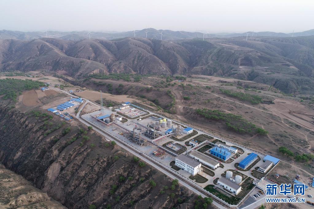延長石油集團有限責任公司延長氣田采氣二廠一處天然氣凈化站(4月28日攝,無人機照片)。新華社記者 張博文 攝