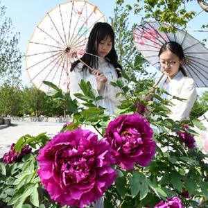 “五一”假期,位于山東青島西海岸新區的國際牡丹產業園舉行賞花會,競相綻放的各色牡丹花吸引眾多游客前來踏青賞花,享受假日春光。