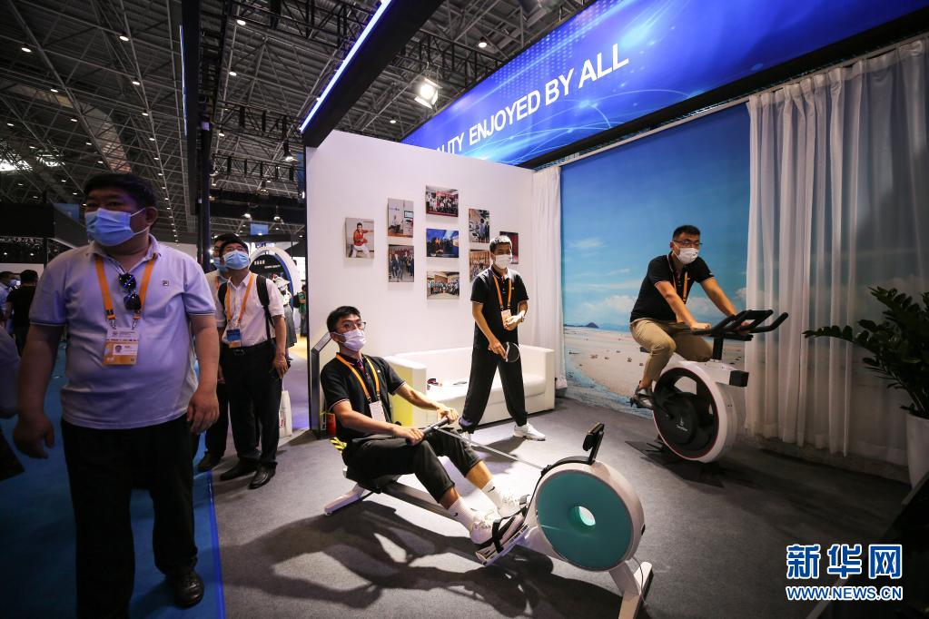 5月7日,觀眾在消博會(huì)現(xiàn)場體驗(yàn)智能運(yùn)動(dòng)產(chǎn)品。