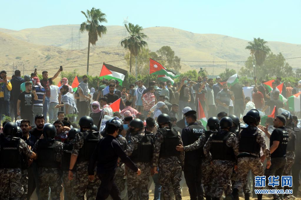 5月14日,人們?cè)诩s旦凱拉邁附近舉行抗議示威活動(dòng),聲援巴勒斯坦民眾。