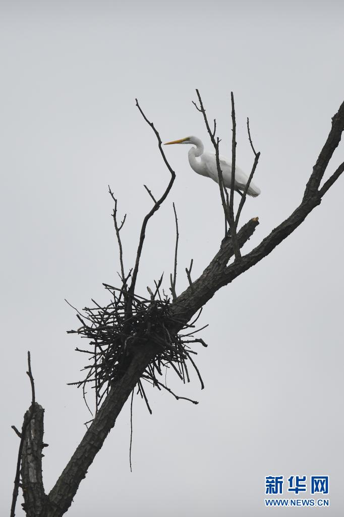 隨著天氣轉暖,大批鷺鳥飛到湖南益陽沅江市的南洞庭湖區筑巢、棲息、繁殖。