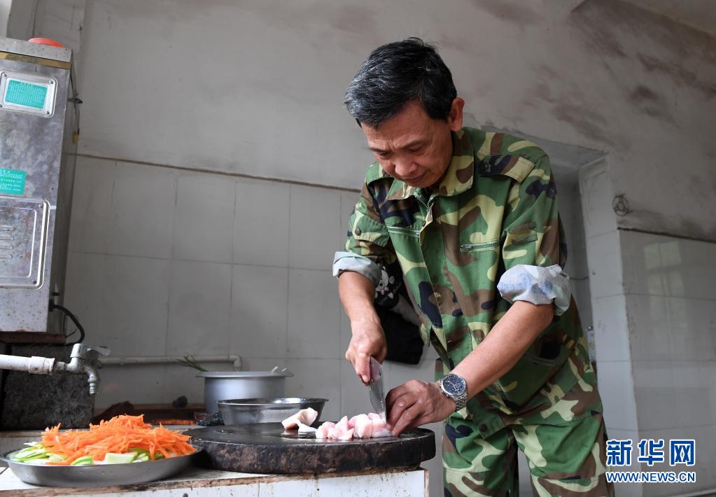 在廣西上思縣那琴鄉中心小學逢通村教學點,梁志雄老師在給學生做午飯(6月16日攝)。新華社記者 陸波岸 攝
