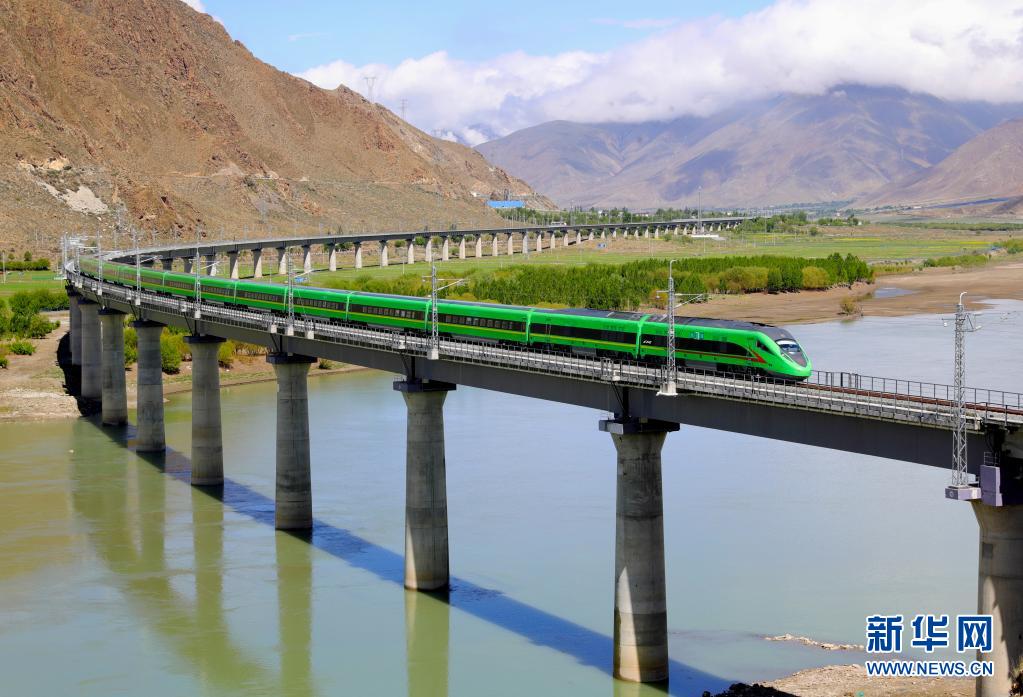 試運(yùn)行的復(fù)興號(hào)列車行駛在桑日縣境內(nèi)(6月8日攝)。