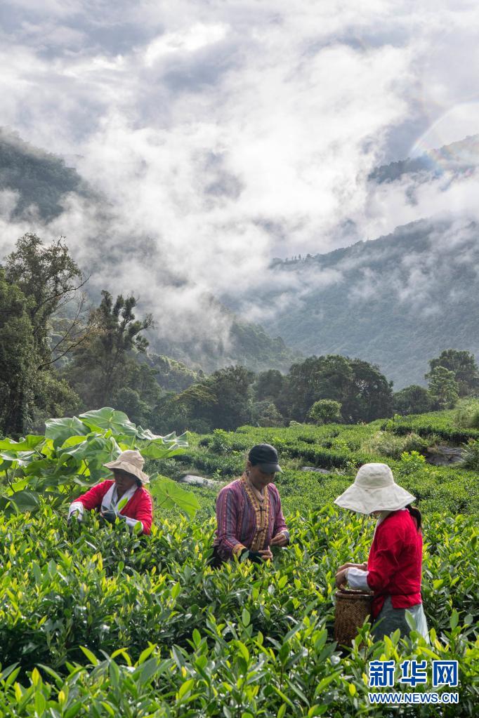 林芝市墨脫縣果果塘茶場的茶農在采集茶葉(2020年9月19日攝)。