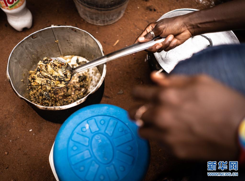 對(duì)于生活在糧食匱乏狀況下的居民,蟲(chóng)子不僅意味著食物可以果腹,也是財(cái)富的來(lái)源。在雨季,來(lái)自首都班吉的經(jīng)銷商每天都騎著摩托車來(lái)到當(dāng)?shù)兀召?gòu)當(dāng)?shù)鼐用褡?lái)的毛毛蟲(chóng),然后賣到首都消費(fèi)者手里。