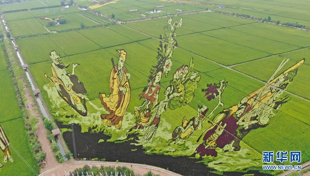 這是8月16日拍攝的稻田畫《八仙過海》(無人機照片)。