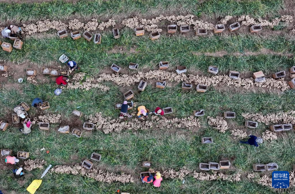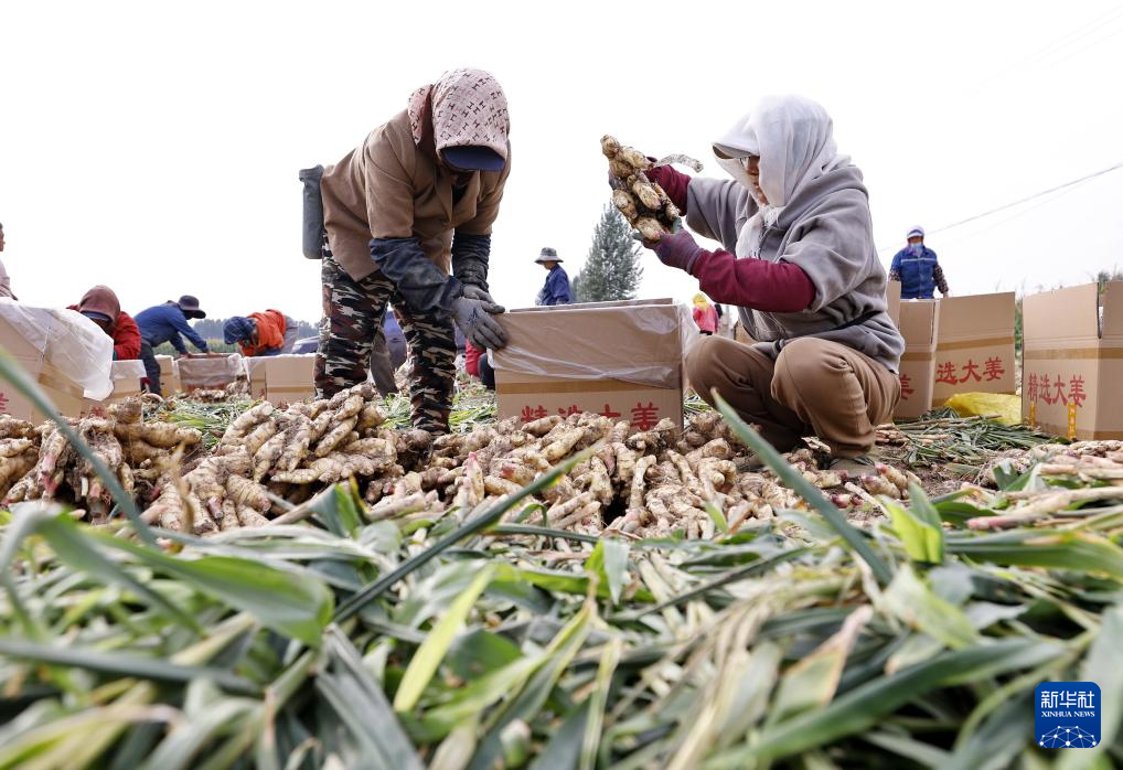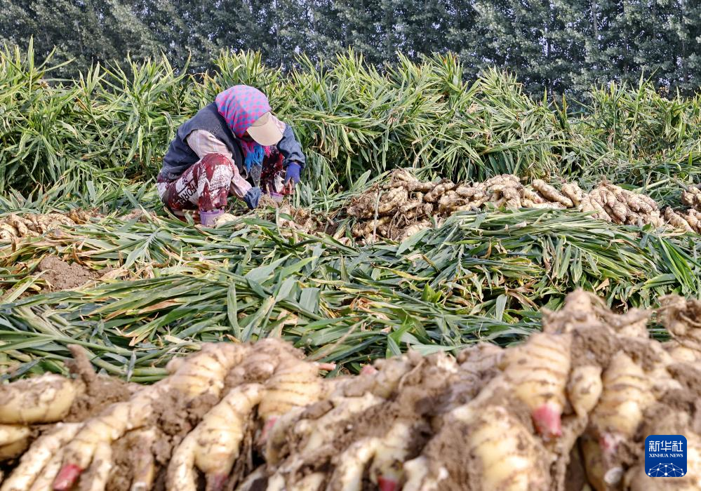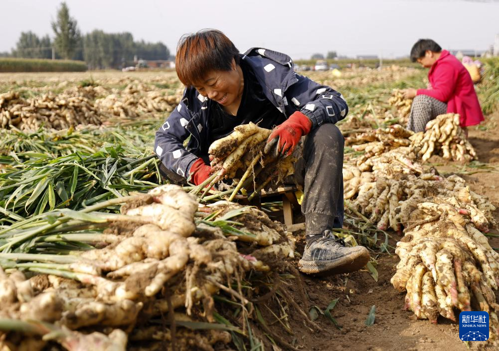 近日,河北省唐山市丰南区的生姜迎来收获季,田间一派繁忙景象。当地政府引导农民因地制宜发展生姜种植,借助规范化、标准化管理,有效提高生姜品质和产量,助力农民增收。