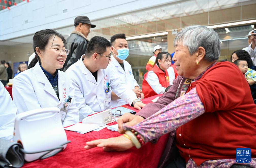 10月29日,医生在内蒙古鄂尔多斯市神华康城社区为社区居民义诊。