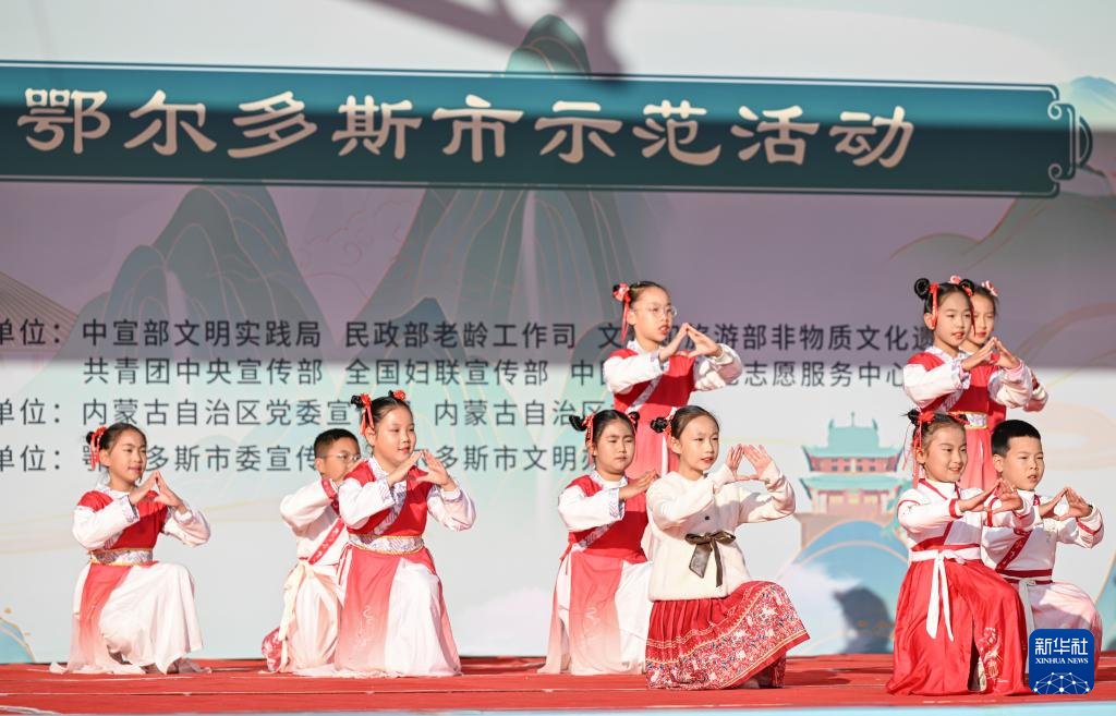 10月29日,学生在内蒙古鄂尔多斯市伊金霍洛旗第四小学表演。