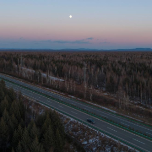这是11月4日拍摄的黑龙江省伊春市丰林县上空的月亮(无人机照片)。