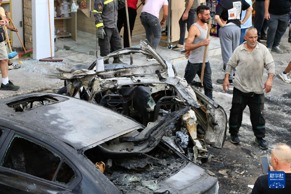 11月3日,在黎巴嫩南部奈拜提耶省杜韦尔镇,人们在以色列空袭现场清理车辆残骸。新华社发(阿里·哈希绍摄)pagebreak