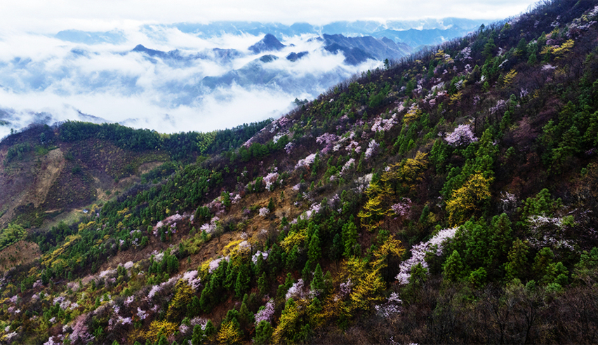近日,安徽省宁国市万家乡野樱谷雨后初霁,粉白色的花浪与云涛在山峦间交织晕染,宛若挥毫泼就的立体水墨长卷,美不胜收。