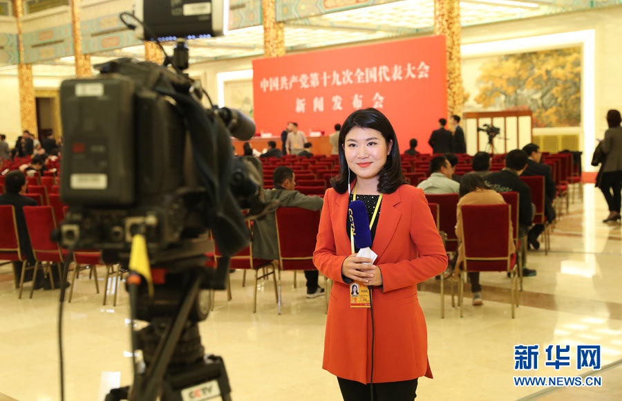 2017年10月17日下午,中國共產黨第十九次全國代表大會新聞發言人在人民大會堂三樓金色大廳舉行新聞發布會,并回答中外記者的提問。圖為記者在新聞發布會現場做準備。新華網 翟子赫 攝