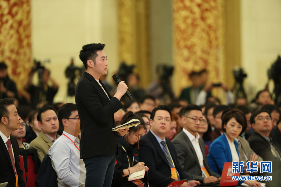 2017年10月17日下午,中國共產黨第十九次全國代表大會新聞發言人在人民大會堂三樓金色大廳舉行新聞發布會,并回答中外記者提問。圖為人民日報記者提問。新華網 翟子赫 攝