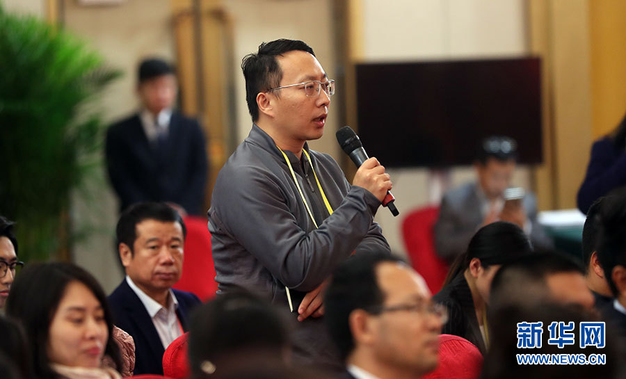 10月22日,十九大新聞中心在梅地亞中心二層新聞發布廳舉辦集體采訪活動,邀請教育領域代表談“教育綜合改革”。圖為中國青年報記者提問。新華網 郝廣鵬攝