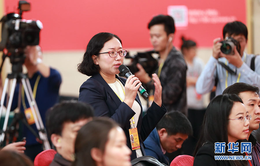10月23日,十九大新聞中心舉辦集體采訪活動,主題為“打好生態環保攻堅戰”。圖為今日中國雜志社記者提問。新華網 郝廣鵬攝