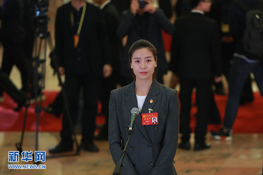 10月24日,人民大會堂舉辦“黨代表通道”第三場采訪活動。圖為魏秋月代表接受采訪。新華網(wǎng)記者 翟子赫 攝