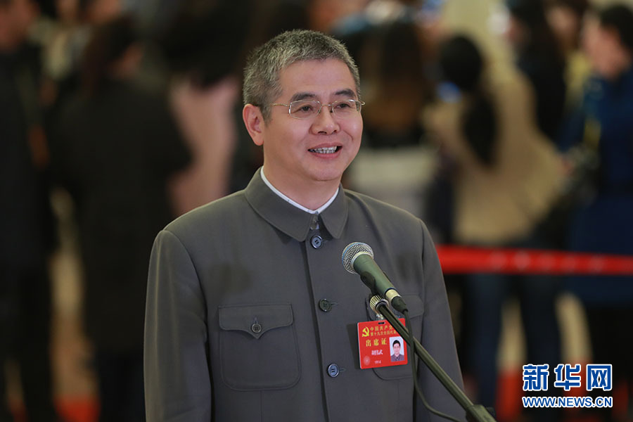 10月24日,人民大會堂舉辦“黨代表通道”第三場采訪活動。圖為胡偉武代表接受采訪。新華網記者 翟子赫 攝
