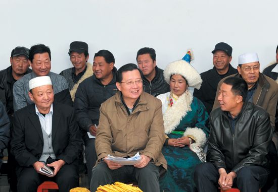 11月22日,省委書記、省人大常委會(huì)主任強(qiáng)衛(wèi)深入貴德縣河陰鎮(zhèn)大史家村,面對面向基層黨員和農(nóng)牧民群眾宣講黨的十八大精神。(記者 劉端強(qiáng) 攝)