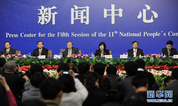 2011年3月11日上午10:45,十一屆全國人大四次會議記者會,人民銀行行長周小川、人民銀行副行長胡曉煉、人民銀行副行長劉士余、人民銀行副行長兼國家外匯管理局局長易綱出席記者會接受媒體采訪。