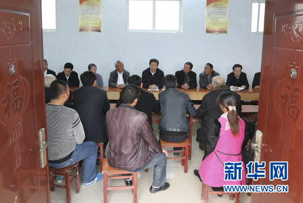 ??? 3月17日,習近平在東壩頭鄉張莊村村委會與干部群眾座談,聽取意見和建議。 新華社記者李學仁攝