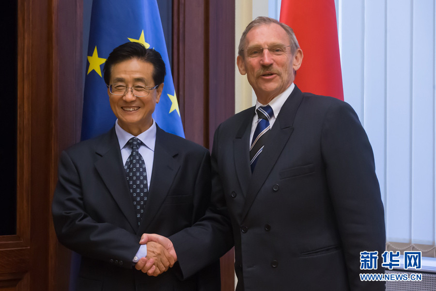 ??? 9月11日,中共中央書記處書記、中央紀(jì)委副書記趙洪祝(左)在匈牙利首都布達(dá)佩斯會見匈牙利內(nèi)務(wù)部長平特爾。應(yīng)匈牙利執(zhí)政黨青民盟邀請,中共中央書記處書記、中央紀(jì)委副書記趙洪祝率中共代表團于9月10日至11日訪問匈牙利。新華社發(fā)(弗爾季·奧蒂洛攝)