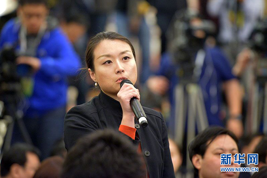 ????3月15日,國務院總理李克強在人民大會堂三樓金色大廳會見采訪十二屆全國人大三次會議的中外記者并回答記者提出的問題。圖為中國日報記者提問。新華網/中國政府網?郭小天 攝