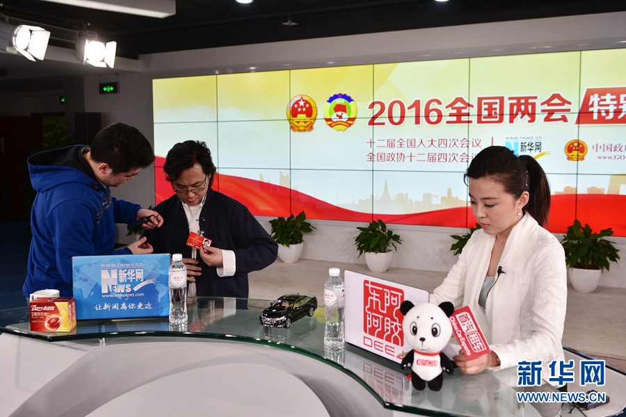 3月13日,全國人大代表、中國文聯全委、中國音樂家協會副主席,上海音樂家協會副主席、上海音樂學院副院長廖昌永做客新華網2016全國兩會特別訪談,與新華網網友在線交流。圖為廖昌永在準備訪談。新華網 郭小天 攝