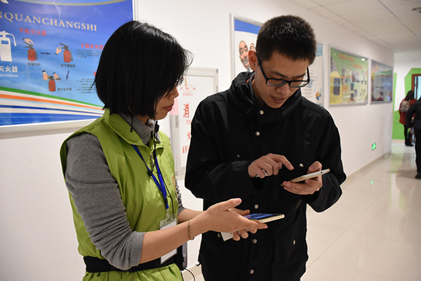在鯤鵬青少年事務服務中心,中國青年網(wǎng)記者曾繁華(左二)與志愿者深度交流。中國網(wǎng)信網(wǎng) 陳舞陽 攝