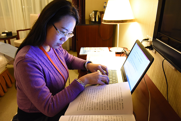 中國西藏網(wǎng)記者蘇文彥在研究福建省扶貧開發(fā)工作相關資料。中國網(wǎng)信網(wǎng) 陳舞陽 攝