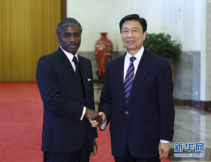 7月13日,中國國家副主席李源潮在北京人民大會堂與赤道幾內亞副總統曼格會談。 新華社記者 謝環馳 攝