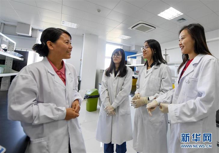 9月28日,在天津大學藥學院,馮翠玲(左一)和學生在實驗室里交流。新華社記者白禹攝