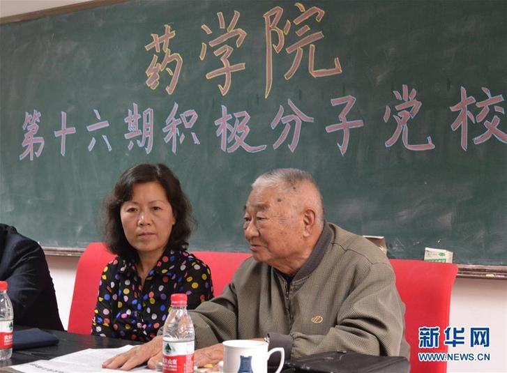 馮翠玲(左)和天津大學的老教授印邦炎為學生講黨課(2016年10月15日攝)。新華社發(fā)