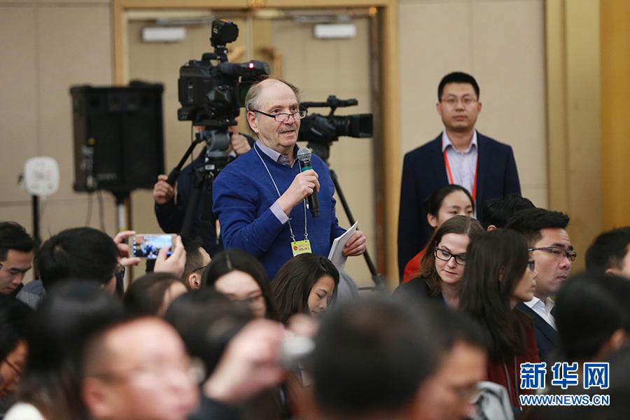 3月11日,十二屆全國(guó)人大五次會(huì)議新聞中心舉行記者會(huì),邀請(qǐng)工業(yè)和信息化部部長(zhǎng)苗圩、副部長(zhǎng)辛國(guó)斌和總工程師、新聞發(fā)言人張峰就“推進(jìn)實(shí)施‘中國(guó)制造2025’”的相關(guān)問題回答中外記者的提問。圖為德國(guó)世界報(bào)記者提問。新華網(wǎng)/中國(guó)政府網(wǎng) 傅義洲 攝