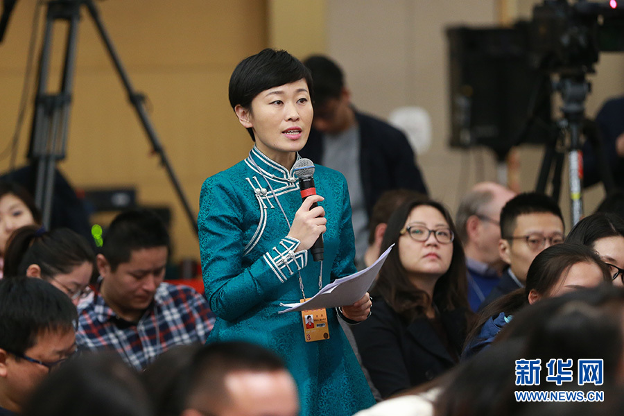 3月11日,十二屆全國人大五次會議新聞中心舉行記者會,邀請工業(yè)和信息化部部長苗圩、副部長辛國斌和總工程師、新聞發(fā)言人張峰就“推進實施‘中國制造2025’”的相關(guān)問題回答中外記者的提問。圖為內(nèi)蒙古廣播電視臺記者提問。新華網(wǎng)/中國政府網(wǎng) 傅義洲 攝