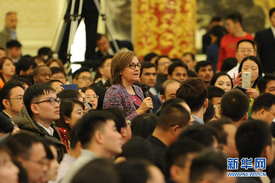 3月15日上午,國務(wù)院總理李克強(qiáng)在人民大會堂三樓金色大廳會見采訪十二屆全國人大五次會議的中外記者并回答記者提出的問題。圖為法蘭西廣播公司記者提問。新華網(wǎng)/中國政府網(wǎng)?孫韜 攝?
