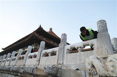 單霽翔表示,隨著故宮開放面積不斷擴(kuò)大,清場人員也不斷增加。如今,每天700余名工作人員同時開始檢查,涵蓋故宮開放區(qū)域的每個角落。包括室外所有外露文物(如殿外銅缸)、附屬設(shè)施、屋脊門廊等,室內(nèi)的所有文物、展室角落、展柜上下等。