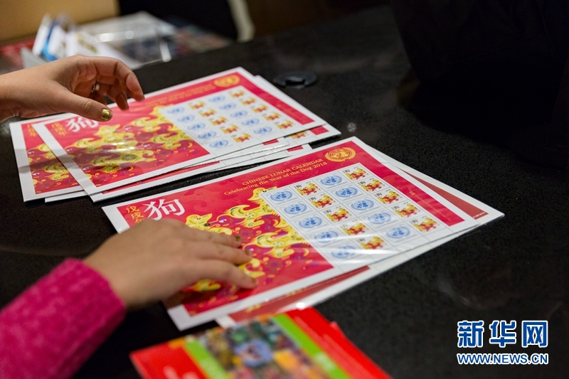 2月7日,在位于紐約的聯(lián)合國總部,一名游客購買狗年郵票。新華網(wǎng)記者李木子 攝