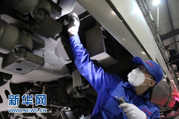 石家莊動車運用所的檢修工正在作業。新華網 金佳緒 攝
