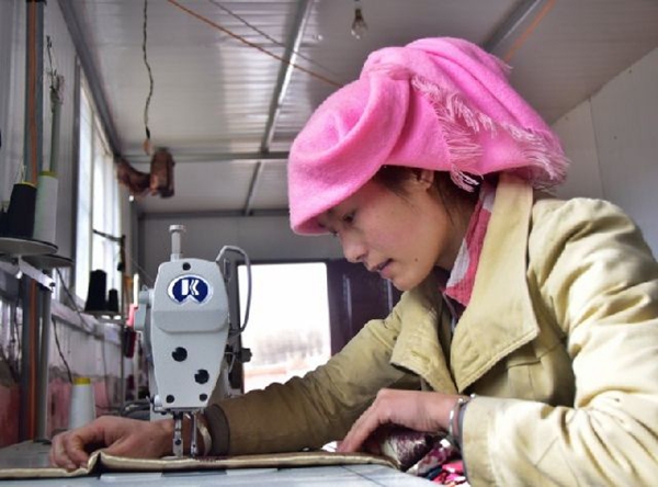 記者在村民文昌多吉的作坊里看到,地上鋪滿待剪裁的布料,幾臺(tái)裁縫機(jī)整齊擺放著。冬日的暖陽透過玻璃窗照射進(jìn)來,多吉和妻子一人負(fù)責(zé)剪裁,一人負(fù)責(zé)縫紉。而平時(shí)他家有5個(gè)人做,最多的時(shí)候一天可掙1000元,相當(dāng)于過去種地一年的收入。