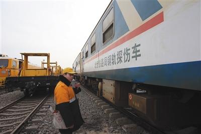 昨日,工作人員正在對鋼軌探傷車進行調試。新京報記者 王貴彬 攝