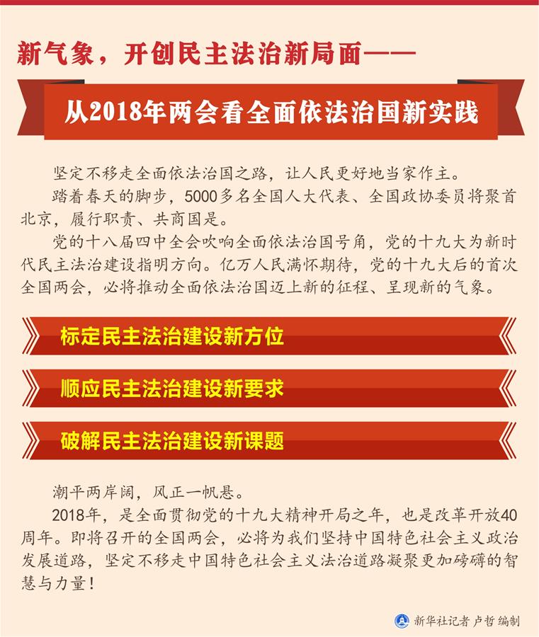 新華社北京2月28日電 題:新氣象,開創民主法治新局面——從2018年兩會看全面依法治國新實踐
