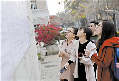 參加廣州公務(wù)員考試的考生在查找考場(chǎng)。